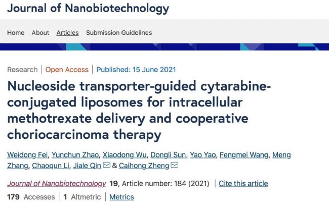浙江大學醫學院附屬婦產科醫院(浙江省婦女保健院),于2021年6月在《Journal of Nanobiotechnology》上發表了一篇文章。該團隊為治療滋養細胞腫瘤提供了一種新的策略,即由轉運體介導的納米藥物治療。聚焦于對核苷轉運體ENT1(Equilibrative Nucleoside Transporter 1,一種膜轉運蛋白)在人絨毛膜癌細胞(JEG-3)上的過表達進行研究,發現其具有活性靶向納米治療藥物的高效靶點潛力。