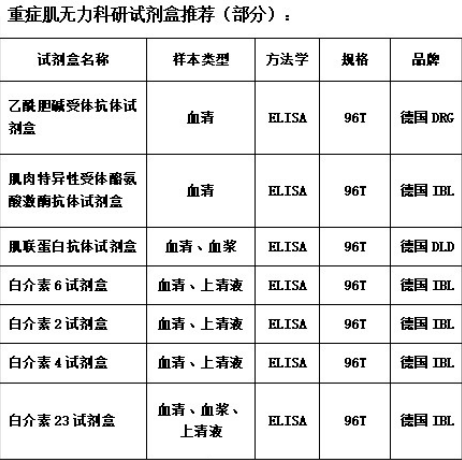 重癥肌無力(MG)特異性血清學抗體有:乙酰膽堿受體抗體(AChR-ab)、人骨骼肌特異性酪氨酸激酶抗體(MuSK-ab)、肌聯(lián)蛋白抗體(Titin-ab)等。除血清學抗體以外,近年來白介素6、白介素2、白介素4、白介素23等細胞因子在重癥肌無力的發(fā)病與病情監(jiān)測中,也受到學者的關(guān)注與研究。