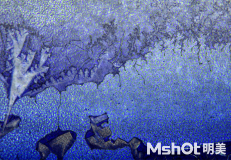 倒置顯微鏡下的精鹽顆粒析出晶體,顏色五彩斑斕