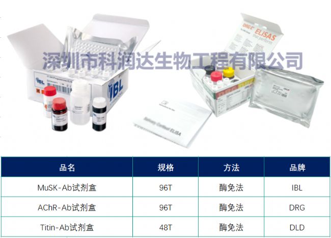 科潤達生物公司代理的原裝進口試劑盒,以酶免法定量檢測患者血清中特異性抗體的濃度,目前已經在國內部分省份的醫療研究機構用于MG科研,取得可靠的應用反饋。公司并有專業的檢測實驗室,可以為用戶提供科研代測服務。