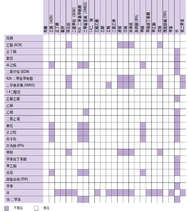 極性固定相(如Si,NH2* ,DIOL基色譜填料)的再生:正庚烷→氯仿→乙酸乙酯→丙酮→乙醇→水。非極性固定相(如反相色譜填料RP-18,RP-8,CN等)的再生:水→乙腈→氯仿(或異丙醇)→乙腈→水。