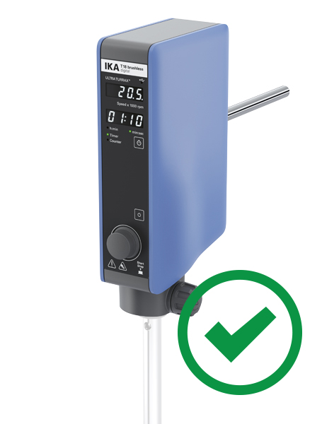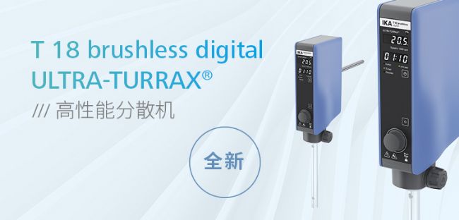 IKA新推出的T18 brushless digital分散機,可處理樣品體積最大可至1500ml,即便用小直徑轉子也可達到最高25000rpm的轉速,最大處理粘度高達5000 mPas,能廣泛地用于乳化,均質,分散和懸浮等實驗操作。