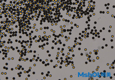 采用倒置熒光顯微鏡MF52-N搭配顯微鏡相機MS23拍攝熒光微球