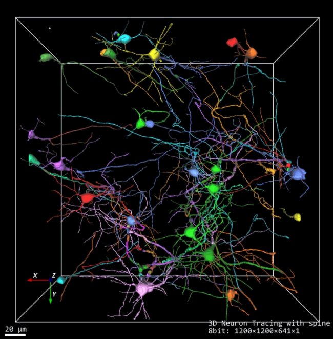 我們共同體驗(yàn)了“自動(dòng)預(yù)測(cè)分析參數(shù) – 自動(dòng)追蹤神經(jīng)元”的“雙自動(dòng)”分析效果。在原始數(shù)據(jù)中,AI 已經(jīng)能夠?yàn)槲覀儙?lái)準(zhǔn)確的結(jié)果。