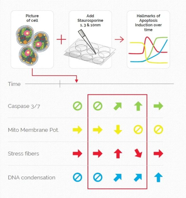 caspase檢測透露的主要是caspase激活級聯開始時的信息。然而,關于單個細胞的其他形態學或激活反應的問題仍未得到解答。Caspase檢測中加入更多的熒光染色劑可以獲得更多的信息,例如在凋亡過程中的細胞骨架行為或細胞色素c介導的凋亡小體的組裝導致caspase-3和caspase-7切割途徑的激活