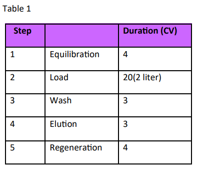 實驗從合作公司獲得的澄清IgG1開始,考察了在流量略有變化情況下的負載能力,一段時間后對收獲的樣品進行過濾,未觀察到降解沉淀現象。
