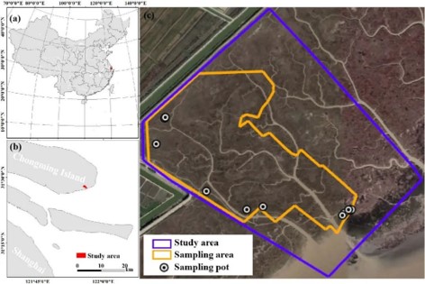 為了確定濱海鹽沼潮溝對植被群落空間分布及其生物量的影響, 來自復旦大學的研究團隊在上海崇明東灘濱海濕地(121°54′-121°55′E,31°27′-31°28′N)進行了研究,主要目的為:(1)探索UAV-LiDAR數據估算鹽沼植物AGB的潛力;(2)研究潮溝對鹽沼植物群落空間格局及其地上C儲量的影響。