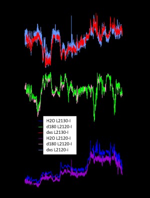 如圖所示,Picarro L2130-i 相比 L2120-i更加精確,而在比較氘過量(d-excess)圖時也更加明顯。此外,當大氣濕度遠低于儀器的靈敏度區間時,Picarro L2130-i的性能會優于 L2120-i。
