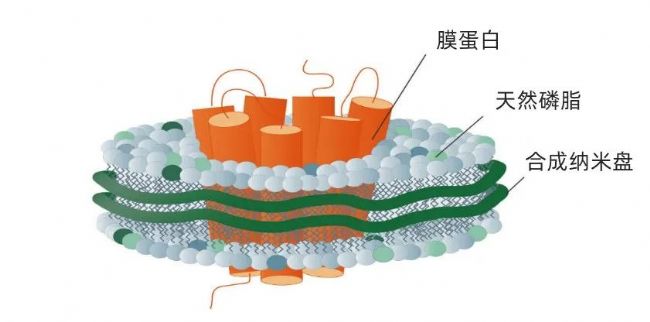 圖 1:穩(wěn)定 假設(shè)的膜蛋白在合成納米盤中的示意圖。