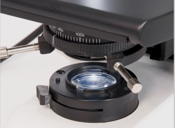 光源燈絲被成像在聚光鏡焦點平面上,以平行光照明樣品的觀察區域。