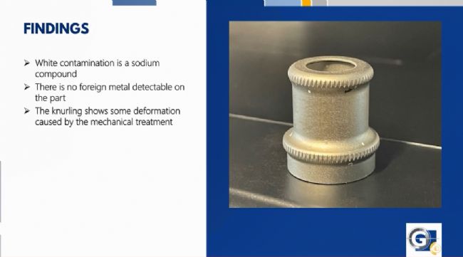 最后,通過測試,我們發現,在這些白色區域上沒有檢測到任何外來金屬。污染物是鈉化合物,這表示那不是工藝中的金屬鹽,也不是電鍍過程中產生的。那一定是我們通常在預處理中就已經存在的。樣品一定是在生產過程中被污染了。