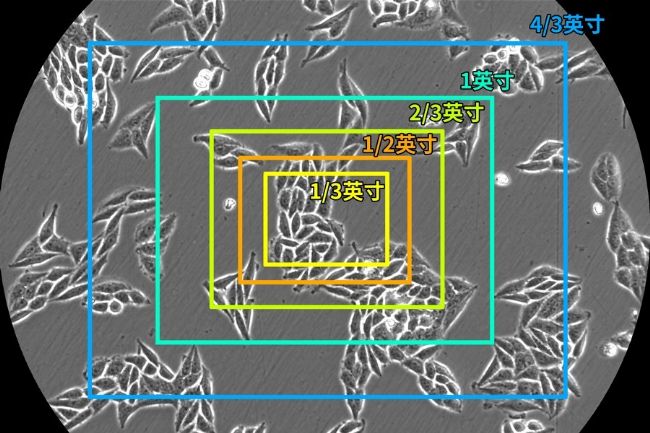 (2)芯片尺寸:指圖像傳感器的成像靶面尺寸,在同樣成像像場下,靶面越大,視野越大,捕獲的光子越多,感光性能越好,信噪比越高。顯微成像常見的芯片尺寸有4/3英寸,1英寸,2/3英寸,1/2英寸等。