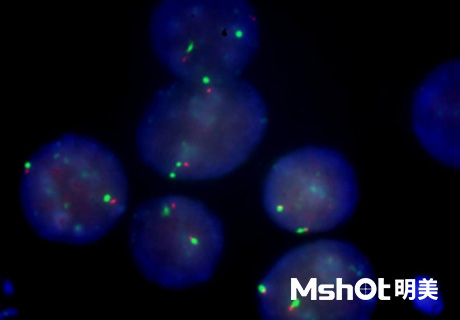 熒光原位雜交分析系統利用熒光標記的特異核酸探針與細胞內相應的靶DNA分子或RNA分子,雜交,通過在熒光顯微鏡或共聚焦激光掃描儀下觀察熒光信號,來確定與特異探針雜交后被染色的細胞或細胞器的形態和分布,或者對結合了熒光探針的DNA區域或RNA分子在染色體或其他細胞器中進行定位。