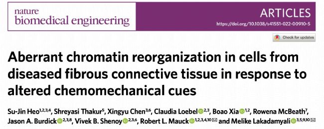 組織(包括肌腱組織)具有很大的剛度范圍,組織變性能改變細胞外基質(ECM)的化學物理環境。因此,作者假設,病變hTCs(或其祖細胞)基因組組織的變化可能是由惡化的組織微環境中的異常化學-力學信號驅動的,特別是由組織剛度的變化引起的。