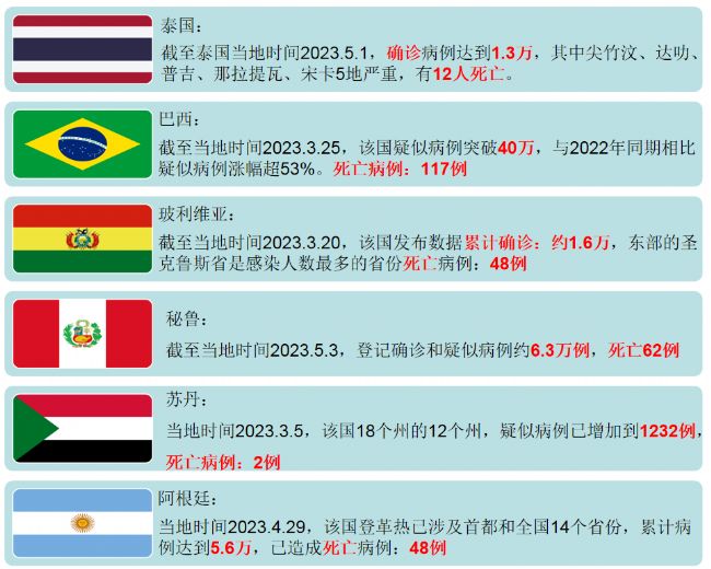 登革熱的疫情在一周內呈上升趨勢。除泰國以外,玻利維亞、秘魯、蘇丹等國也報告了