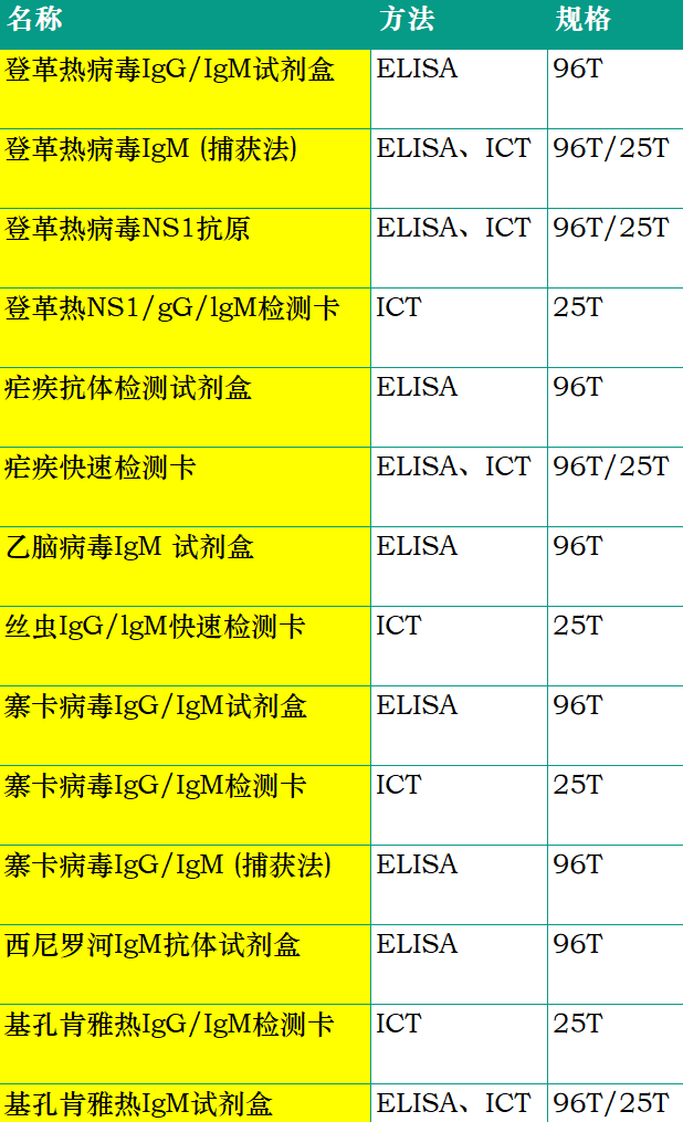 登革熱檢測試劑有ELISA法和膠體金法。經過對比實驗證實,