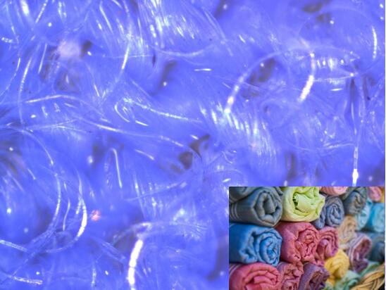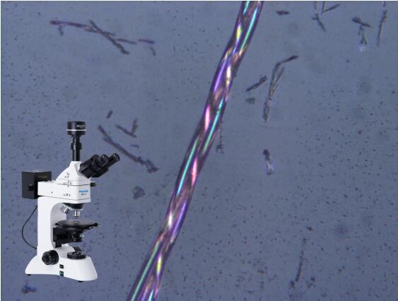 尼龍纖維表面光滑,在偏光顯微鏡下顯示出雙折射顏色