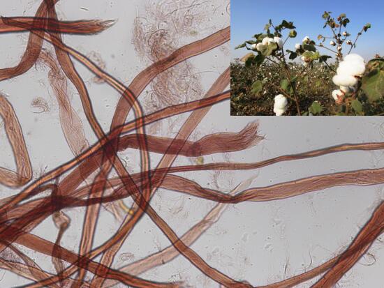 生物顯微鏡下棉花纖維縱面呈扁平帶狀,有天然轉曲