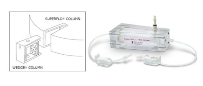 Wedge柱為superflo徑向柱的縮小模型,通常用于工藝開發中,最小規格柱體積為5ml, 本次對比測試采用20ml wedge柱進行。