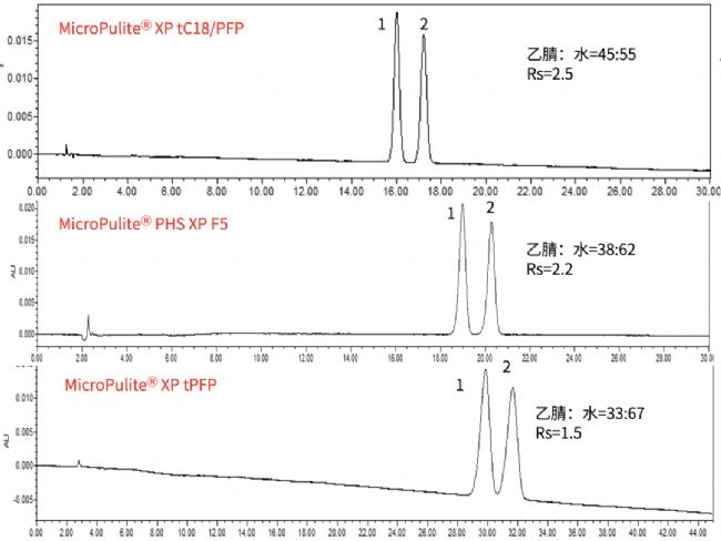 曲伏前列素含有兩個雙鍵,5,6-反式-曲伏前列素為其中一個雙鍵的順反異構體的雜質,結構非常接近,分離這種類型的物質,PFP類型的鍵合相一般作為我們的首選,微純生物科技可以提供三款不同類型鍵合的PFP固定相,用來滿足客戶的不同需求。