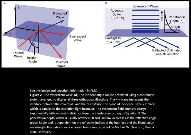 ①Fish KN. Total Internal Reflection Fluorescence (TIRF) Microscopy. Curr Protoc. 2022 Aug;2(8):e517. doi: 10.1002/cpz1.517. PMID: 35972209; PMCID: PMC9522316.