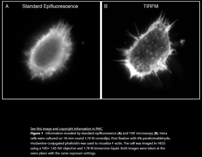 普通熒光成像與TIRF成像對比①