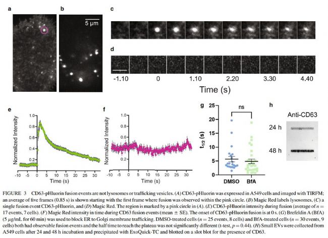 通過成像分析CD63-pHluorin可視化外泌體與質膜融合,排除溶酶體或囊泡轉運。