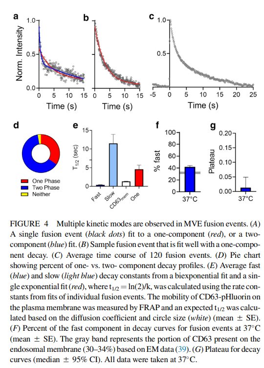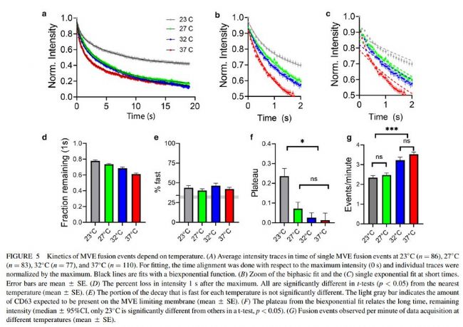 對不同動力學模式進行分析,顯示外泌體與質膜融合事件受溫度控制。