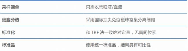 唾液檢測(cè)結(jié)果與血液檢測(cè)結(jié)果高度一致。對(duì)30人的唾液樣本和血液樣本同時(shí)進(jìn)行過(guò)篩處理和磁珠分選處理,血液樣本和唾液樣本的端粒長(zhǎng)度定量結(jié)果達(dá)到一致。