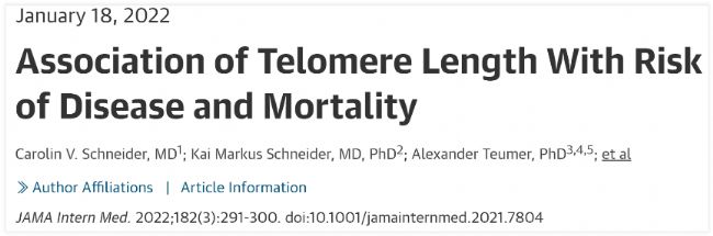 文獻來源:Schneider CV, Schneider KM, Teumer A, et al. Association of Telomere Length With Risk of Disease and Mortality. JAMA Intern Med. 2022;182(3):291–300. doi:10.1001/jamainternmed.2021.7804