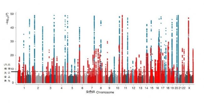 遺傳相關位點:這項研究對50萬人端粒長度和2千萬變異位點,進行了全基因組關聯分析,發現了197個變異與白細胞端粒長度(LTL)相關。