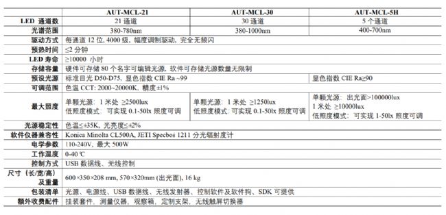 但是,現有的對應的光源產品通常僅僅提供有限幾種光譜、色溫和強度,例如現有工業上常用的色彩視覺評價標準光源箱,通常包含標準的日光、CWF、TL84、A光源等幾種固定光源,強度不可調,且無法增加新的光源;隨著LED技術的不斷發展,各種各樣的光源光譜在市場上都非常常見,并且應用在人類生活的各個場景。 所以現有的光源產品難以滿足現在研究和工業的需求。