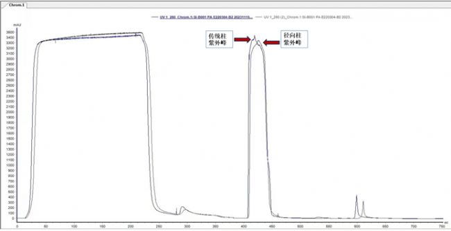 徑向?qū)游鲋膶@O計有效避免了過高的系統(tǒng)反壓,可以大幅縮短保留時間、提升層析效率,將徑向柱與傳統(tǒng)軸向柱進行性能比對。