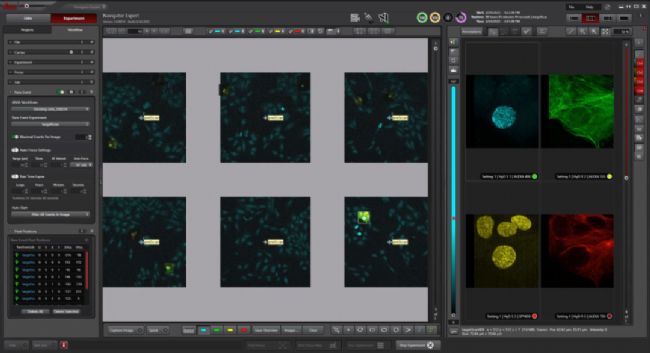 啟動稀有事件檢測工作流程后,概覽掃描圖像會立即傳輸到Aivia,后者將檢測到的稀有事件的像素坐標送回到Navigator Expert,以便進行稀有事件掃描。