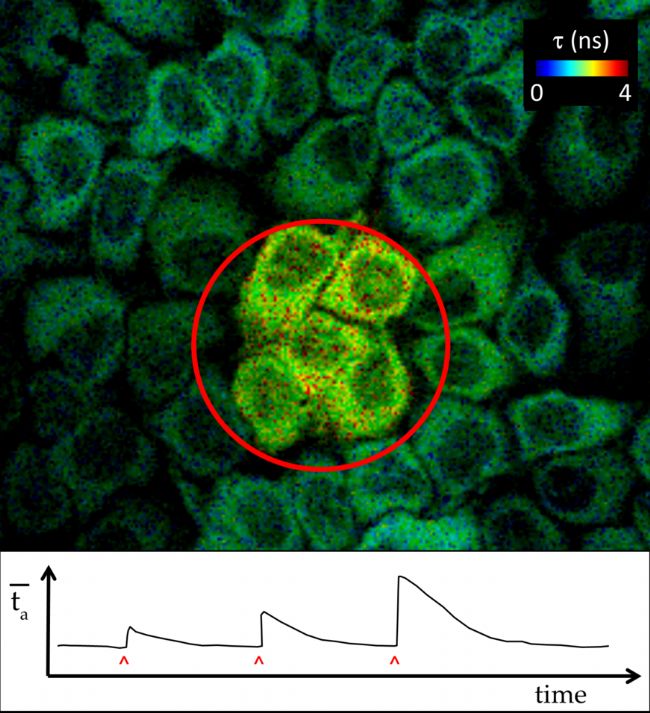 FALCON的技術(shù)速度夠快,可以在活細(xì)胞中使用化學(xué)傳感器和FRET生物傳感器進行熒光壽命成像。
