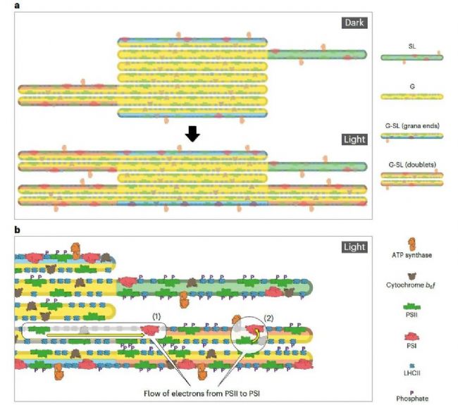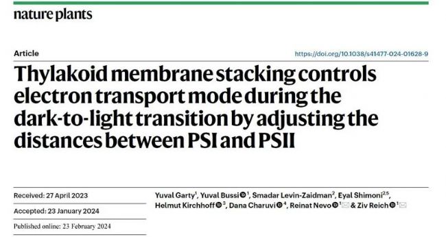 2024年2月23日以色列魏茨曼科學研究所生物分子科學系Reich, Ziv等人在Nature Plants(IF=18.0)雜志上發表題為Thylakoid membrane stacking controls electron transport mode during the dark-to-light transition by adjusting the distances between PSI and PSII的研究論文。研究人員使用冷凍-斷裂低溫掃描電子顯微鏡和透射電子顯微鏡等技術對擬南芥葉片暗-光轉換前后類囊體堆疊方式進行觀察,揭示了在這暗-光轉變過程中形成的獨特膜區,這些膜區同時具有類囊體網絡堆疊區和非堆疊區的特征。研究人員將這些區域稱為 "堆疊的類囊體雙層膜",其形態特征的一個顯著結果是,驅動LET的兩個光系統(PSI和PSII)的距離變近和連通性全面增強。這反過來又減少了在兩個光系統之間傳輸電子的移動載體的擴散距離和障礙,從而最大限度地提高了LET,優化了植物利用光能的能力。這里描述的從暗到光轉變過程中CET和LET 之間的轉變機制,很可能也用于由狀態轉換介導的色適應過程。本研究中,葉綠素熒光測量由雙通道葉綠素熒光儀DUAL-PAM-100完成。
