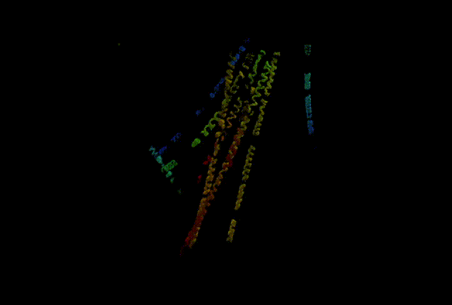 綠藻水綿葉綠體的內生熒光。 使用 STELLARIS 3D-viewer 深度彩色編碼的 Xyz-stack 3D 動畫。
