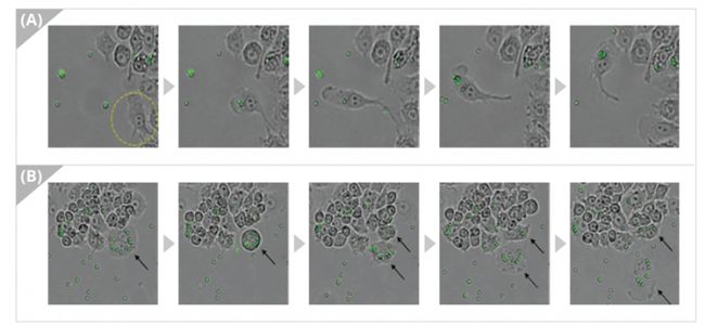 ®活細胞成像設備無需對細胞進行固定,可實現對細胞的可視化以及進行長期動力學測定。利用延時成像技術,可以通過圖像和視頻驗證吞噬作用的發生,豐富研究人員的數據以及確保數據的客觀準確性。