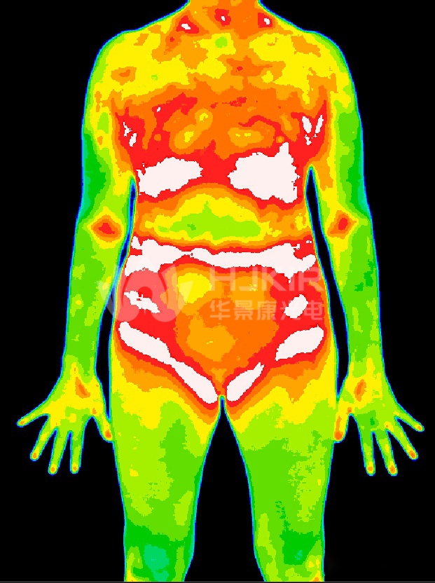 醫用紅外熱像技術是醫學技術和紅外攝像技術,計算機多媒體結合的產物,這是一種記錄人體熱場的影像裝置。人體是一個天然的生物發熱體,由于解剖結構、組織代謝、血液循環及神經狀態的不同,機體各部位溫度不同,形成不同的熱場。紅外熱像儀通過光學電子系統將人體輻射的遠紅外光波經濾波聚集,調制及光電轉換,變為電信號,并經A/D 轉換為數字量,然后經多媒體圖像處理技術,以偽彩色熱圖形式,顯示人體的測溫。正常的機體狀態有正常的熱圖。異常的機體狀態有異常的熱圖,比較兩者的異同,結合臨床就可以診斷,推論疾病的性質和程度。