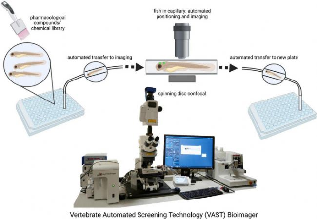 圖2 藥物篩選、自動成像以及斑馬魚幼體分析[2]