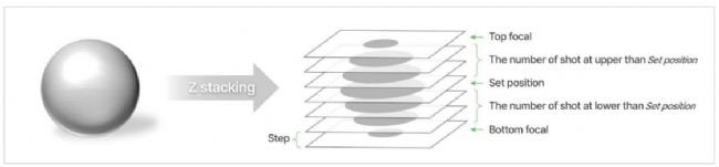 如由細胞組成的組織,根據焦點可以提供各種信息,因此確定各種焦點是至關重要的。通過設置層與層之間的距離(“Step”)和拍攝的圖像數量(“N,N”),使用Celloger®MiniPlus可以在設置位置(Z位置)的上方和下方以固定的間隔(“Step”)生成多層圖像(圖4)。每個觀察點可以輸入不同的設置,并且可以在不同的觀察點執行不同的Z-stacking設置。
