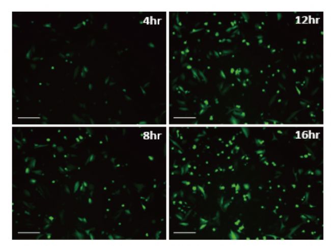 結(jié)果表明綠色熒光蛋白從轉(zhuǎn)染后4小時開始表達,并一直維持到轉(zhuǎn)染后16 小時(圖 4)。
