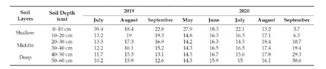 基于穩定同位素(δ18O)的 MixSIAR 模型用于研究天然林中優勢物種(特別是大興安嶺南部白樺)用水策略的季節變化。研究結果表明,適應性的水分利用策略和對降水的快速響應能夠促進植物充分利用來自土壤各個深度的水分,從而使它們能夠更好地適應干旱環境。當降雨量較低時(2019年生長季為390.4毫米),白樺迅速吸收淺層土壤水(0~20 cm,整個根系深度的利用率為40.4%),但當降雨量增加時 (2020年生長季為501.5毫米),白樺逐漸過渡到從較深土層(40~60厘米)提取土壤水分并加深其根系系統(利用率為39.4%),表明其對半干旱環境的適應性。因此,白樺在同一生境中靈活的用水策略可能使其在低降水時期具有競爭優勢。該研究結果對于大興安嶺南部天然林保護和水資源管理具有重要意義。