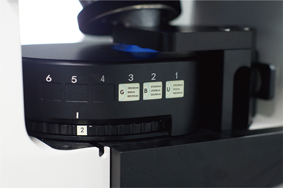 配備6孔熒光附件,更換拆卸便捷,采用轉盤式結構設計,切換方便,能同時滿足多種熒光的觀察需求