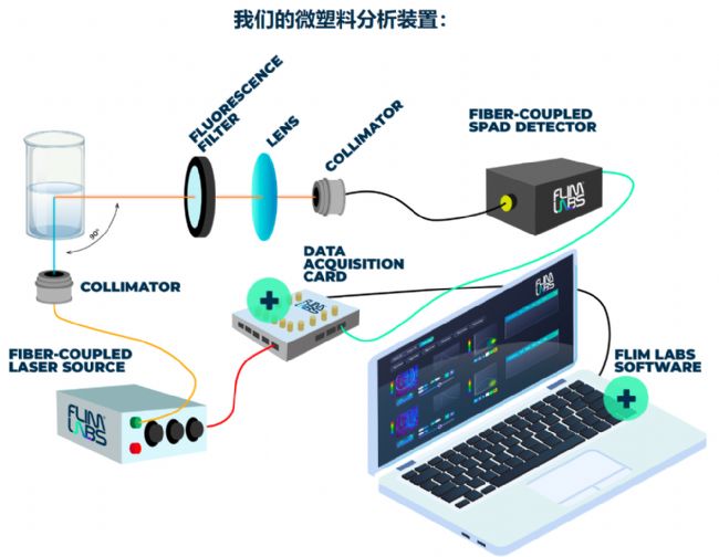 FLIM技術(shù)通過(guò)一個(gè)特定的裝置來(lái)執(zhí)行,這個(gè)裝置包括了一個(gè)強(qiáng)度高的激光源,用于激發(fā)樣本中的分子;一個(gè)高速SPAD探測(cè)器,用于捕捉熒光發(fā)射事件;一個(gè)TCSPC數(shù)據(jù)采集卡,來(lái)記錄SPAD捕獲到的事件;以及復(fù)雜的軟件算法,用于分析熒光壽命數(shù)據(jù)。通過(guò)這些數(shù)據(jù),研究人員可以建立微塑料的熒光特征庫(kù),使得未來(lái)的識(shí)別工作更加迅速和準(zhǔn)確。