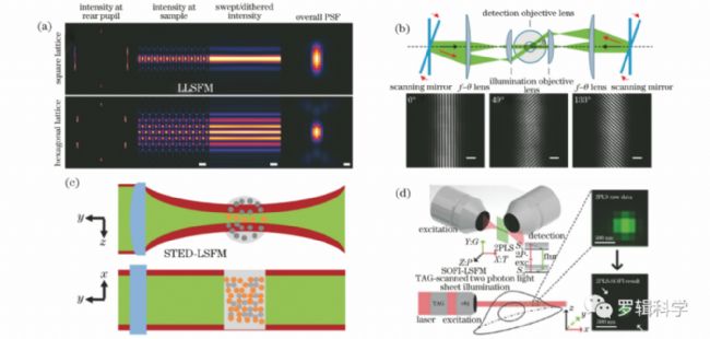 (c)受激輻射損耗光片;(d)隨機(jī)光學(xué)漲落成像光片