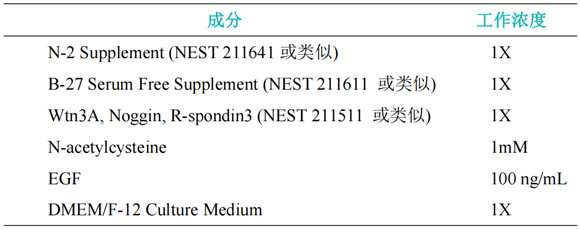 2. 將隱窩重懸在腸類器官完全培養基中,每微升培養基含 8-20 個隱窩。制作完全培養基時,加入: