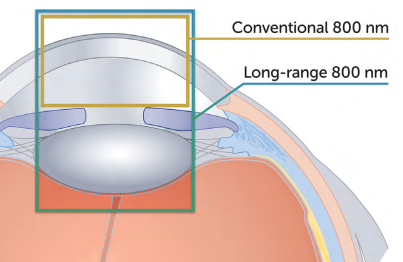 在眼科中,長距離成像有利于對整個(gè)前房(從角膜到晶狀體)的檢查,因?yàn)樗试S在更短的時(shí)間內(nèi)獲得更完整的眼睛圖像。如果配置得當(dāng),它甚至可以用于對整個(gè)眼睛進(jìn)行成像。它還促進(jìn)了視網(wǎng)膜的廣域成像,視網(wǎng)膜的曲率需要更大的成像深度,尤其是在患者不太可能保持靜止的臨床環(huán)境中。