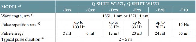 表2為Q-Shift激光器1551±1nm波段與1571±1nm波段部分參數(shù)示例。
