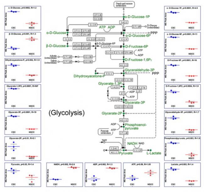 采用IC-MS的方法進行細胞代謝組學分析,幾乎完整地覆蓋了糖酵解途徑和三羧酸循環(TCA)的主要代謝物。(圖6)通過相關測試結果,可以幫助我們有效觀察細胞能量代謝、代謝穩態的變化。